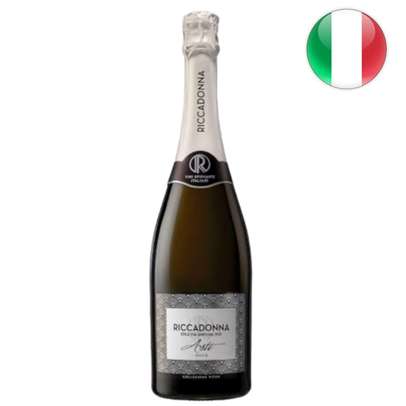 El Riccadonna Asti es un espumante dulce italiano, de la región de Piamonte, elaborado con uva 100% Moscato Bianco. Presenta una graduación alcohólica de 7° o 7.5°, un color amarillo pajizo brillante y aromas y sabores a frutas blancas (melocotón, pera, manzana), flores de acacia y azahar, con toques de miel. Se recomienda disfrutarlo frío, como aperitivo o con postres de frutas y frutos secos