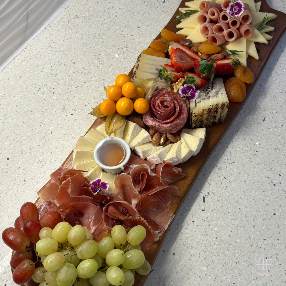 - Servida en tabla de madera de 60 cm en préstamo, lista para lucirte como anfitrión.
